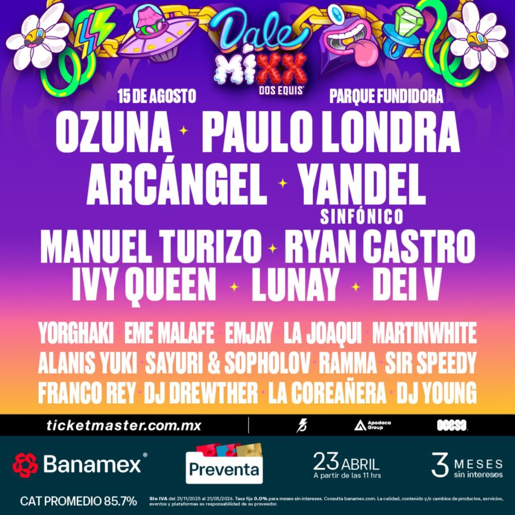 El furor del movimiento urbano está a punto de sacudir Monterrey una vez más. Dale Mixx 2026, consolidado como el festival definitivo del perreo en México, anuncia su cuarta edición con un cartel que ya es historia: Ozuna, Paulo Londra, Arcángel, Yandel Sinfónico, Manuel Turizo, Ryan Castro, Ivy Queen, Lunay, Dei V y una poderosa lista de artistas que prometen hacer explotar el termómetro de la fiesta.